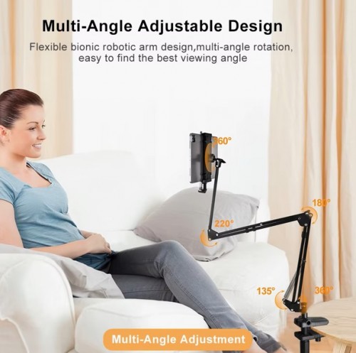 Great for Reading & Watching】Aiming to avoid neck and joints pain due to prolong tablet usage, we design this long arm clamp-based tablet holder. It can grip the tablet and phone sturdily with many viewing angles and work as a good partner for tablets on various occasions, like watching movies, having face time for video calls, reading with the iPad, viewing recipes while cooking in the kitchen.